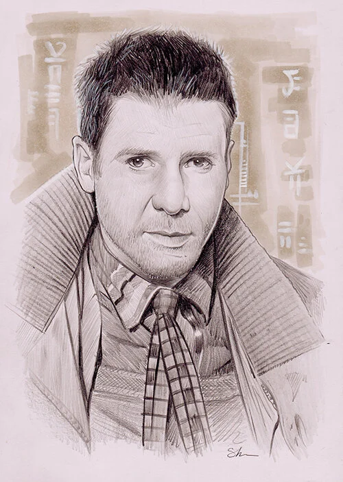 An exhibition featuring pencil portraits from the golden age of Hollywood.
